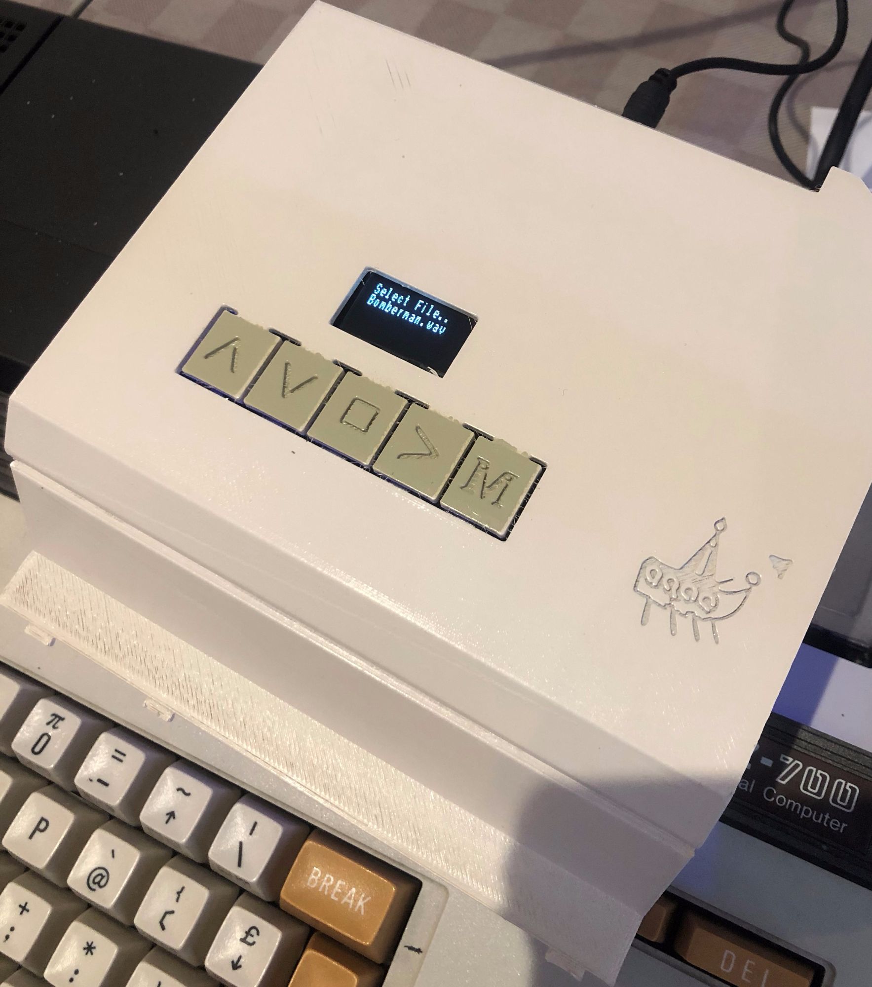 It is used to play WAV files (games and apps) from a MicroSD card through an audio cable into where the tape deck would normally plugin thus eliminating the need for a 30-year-old tape deck. Its a play only function so no